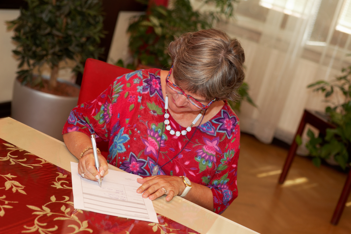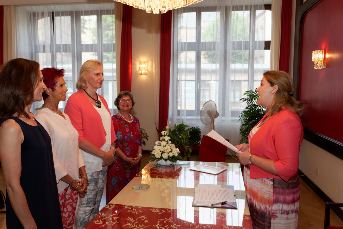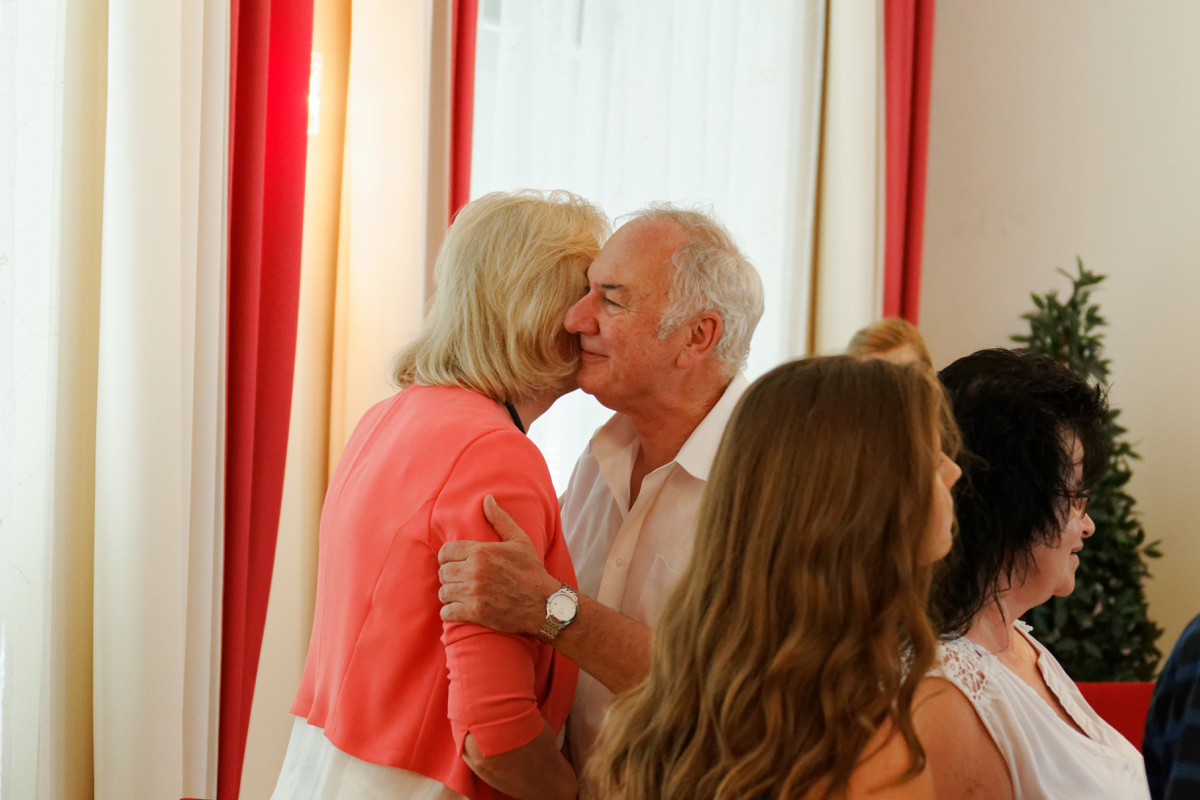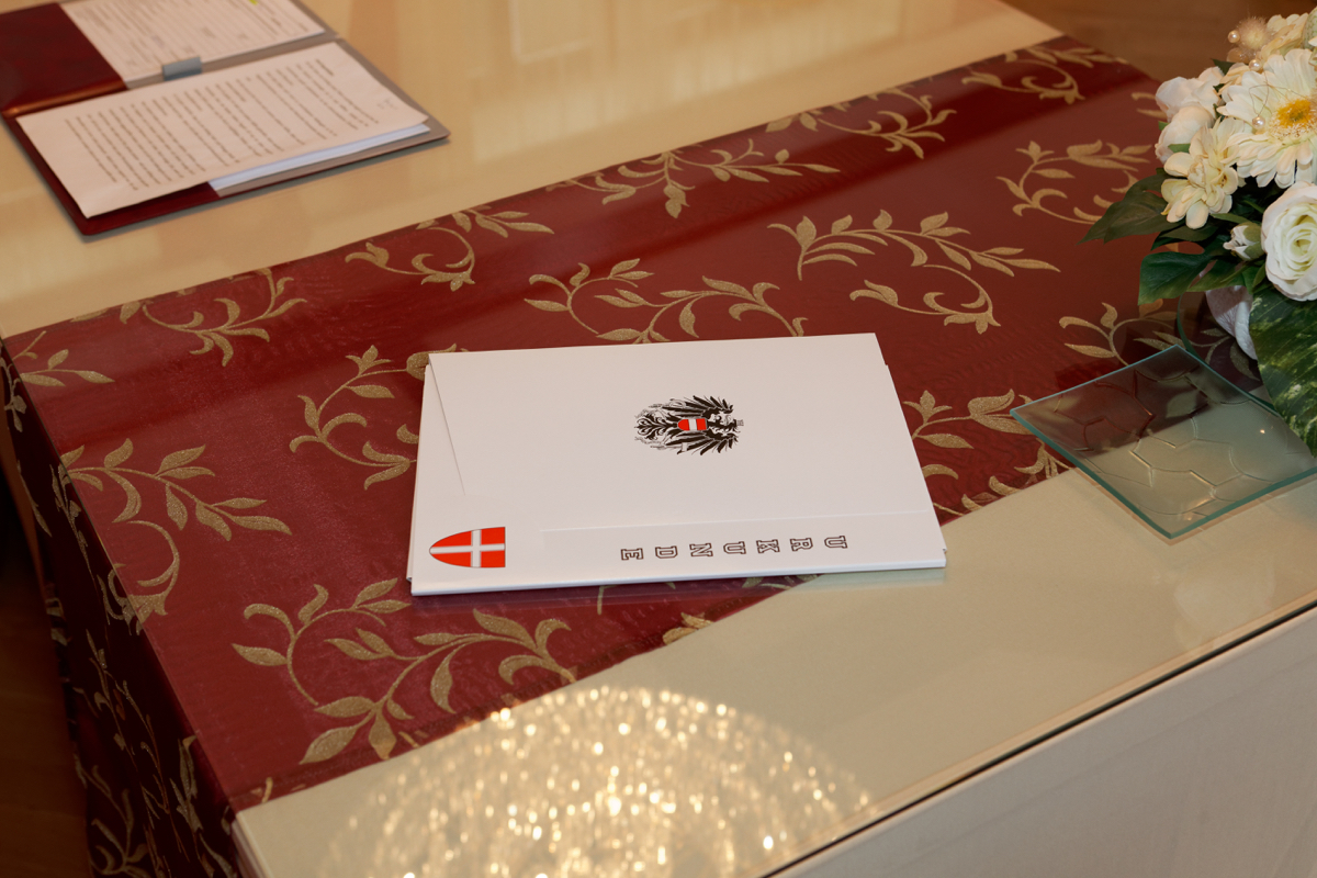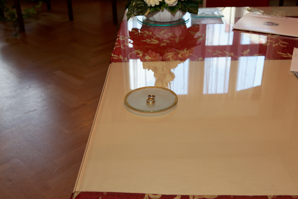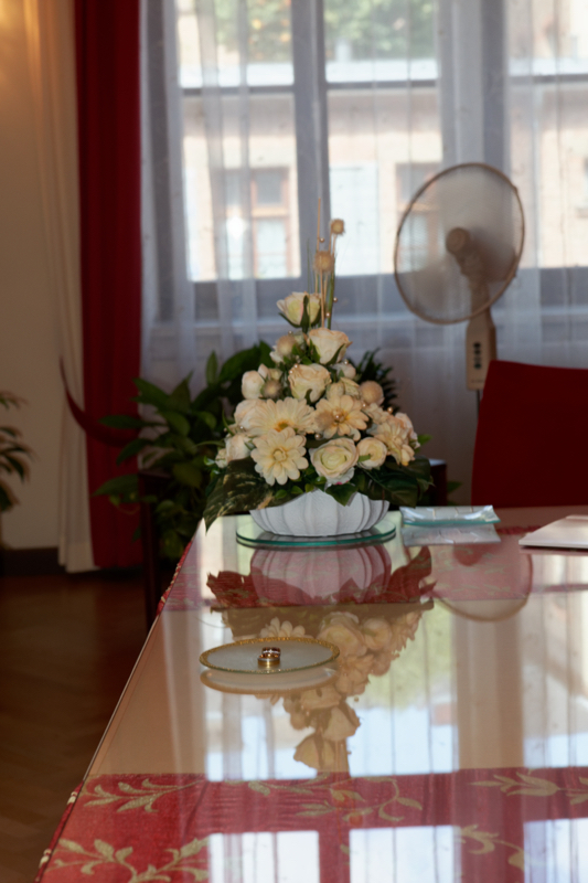 Ein großes DANKE SCHÖN auch an unsere Standesbeamtin! Sie führte uns schön und einfühlsam durch die Zeremonie. Und sie erzählte uns die wunderbare Geschichte von den zwei Halbkugeln – Danach geben wir einander das JA-Wort, steckten einander die Ringe an den Finger und durften uns küssen.